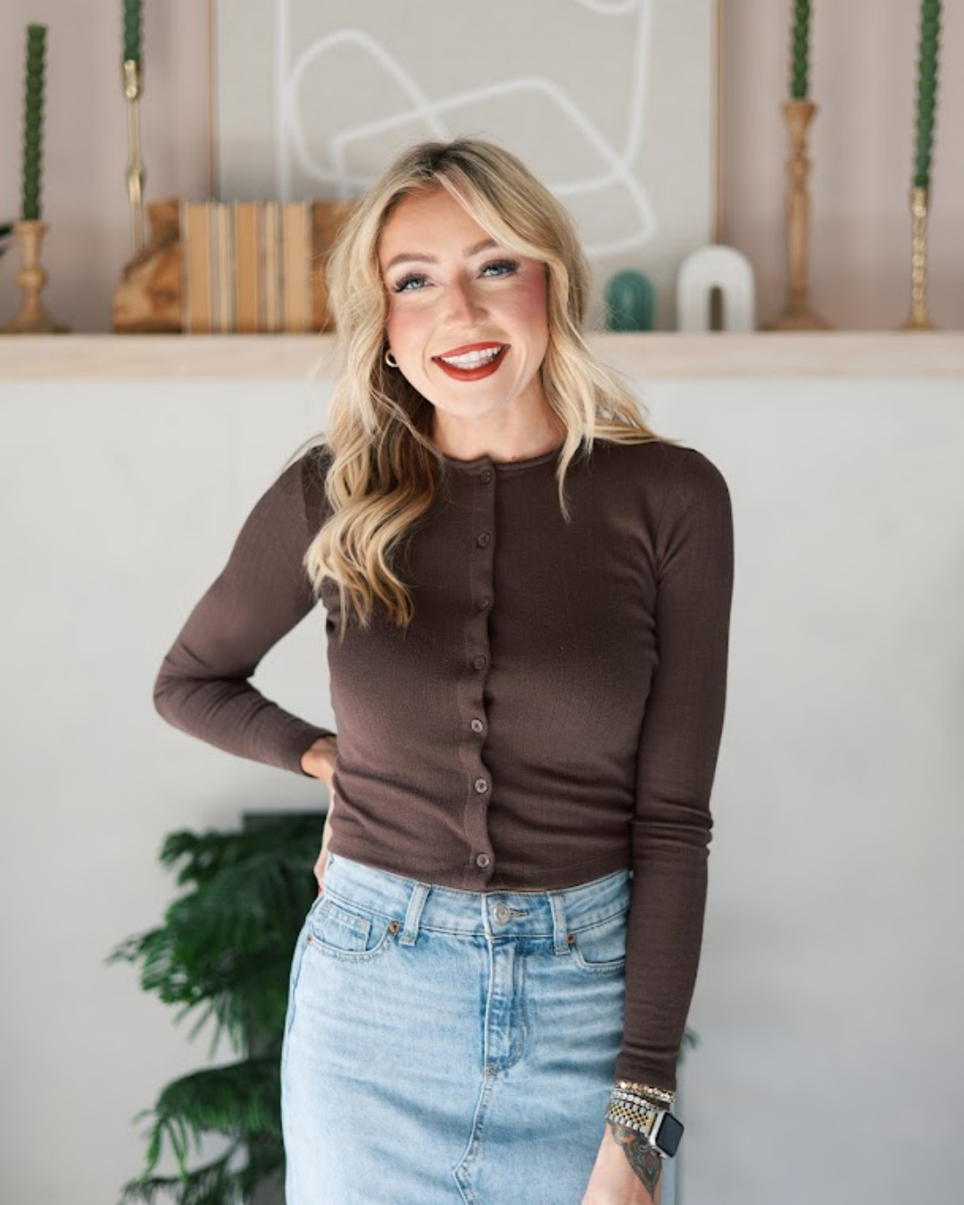 Outside the salon, you’ll find her enjoying time outdoors, traveling, floral arranging, hunting for vintage fashion finds, or relaxing with her family. Her personal style is best described as eclectic—she’s drawn to western vintage vibes but loves a good athleisure look when she’s off the clock.
